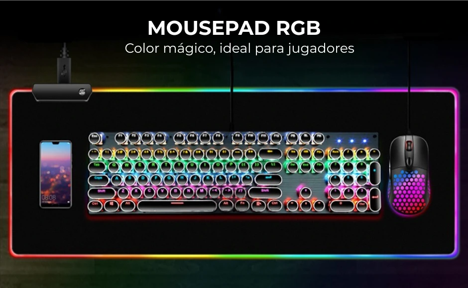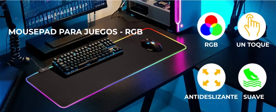 El Mousepad Gamer con borde LED RGB controlable no es solo una alfombrilla: es una extensión de tu setup que transforma tu espacio de juego o trabajo con iluminación dinámica, superficie amplia y respuesta premium para movimientos precisos.