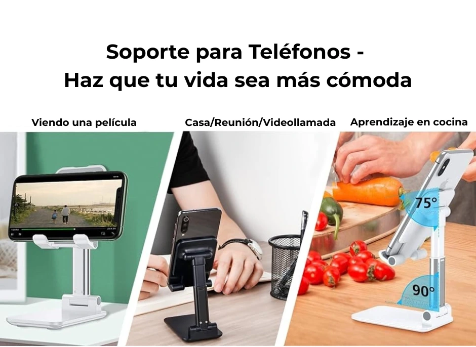 El Soporte de teléfono para mesa te permite tener tu móvil siempre a la vista y en el ángulo perfecto para trabajar, estudiar o entretenerte cómodamente, sin tener que sostenerlo con la mano.